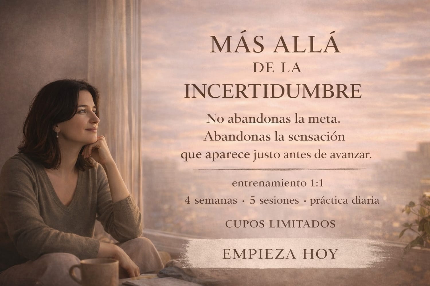 Te acompaño a quedarte cuando aparece la incertidumbre: el segundo exacto en el que tu mente pide salir, postergar o cambiar de dirección para sentir calma.